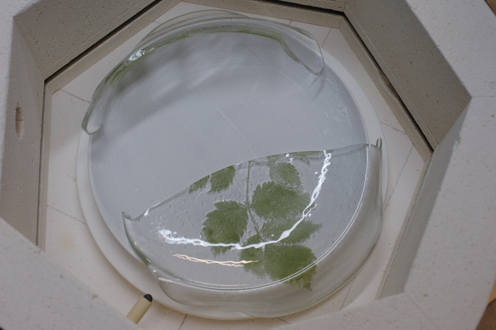 The leaf is a real leaf, I used Paul Tarlow's fossil Vitra tutorial to make the plate. It had been full fused so there shouldn't have been any moisture. Thanks again Morganica and Lauri.
