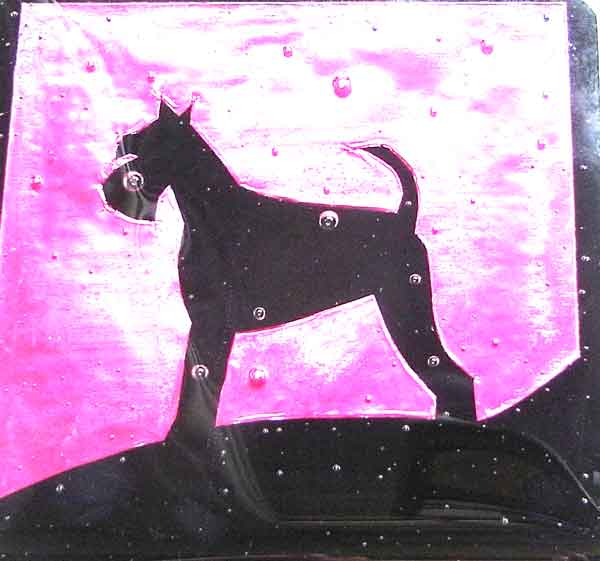 You should be able to see the hare - this is an old piece that I kept as the design was wrong, but as you can see where the silhouette is (black) there are hardly any bubbles, but if you look at the dog - which has just come out of the kiln, there are lots of big bubbles - I didn't get this before, or rarely, especially with the dog.
