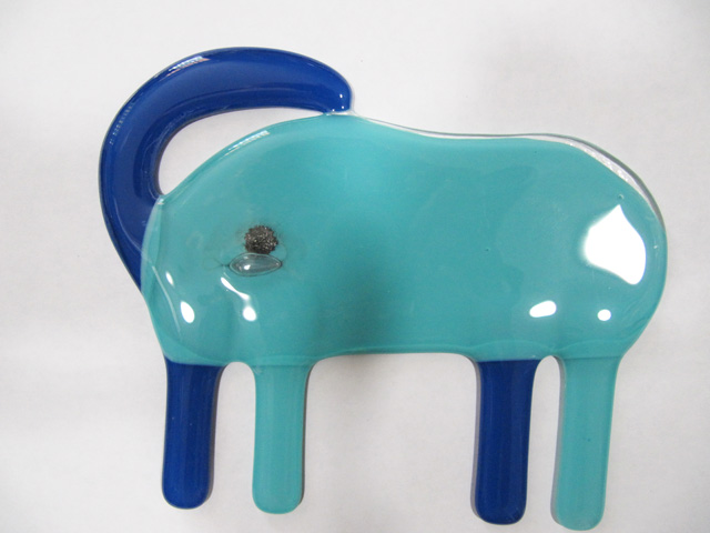 If the glass was clean and without blemish, I don't think that is what caused the bubble. I see lumps around the legs. So you layered the glass around the cat's booty, right? If there was a gap there and you used too much glue, it's possible when the glue burned off the sooty gas migrated to the gap, formed a bubble, then cooled. Just a thought.