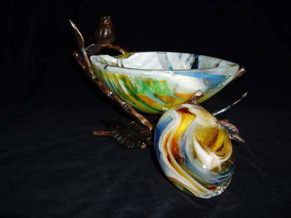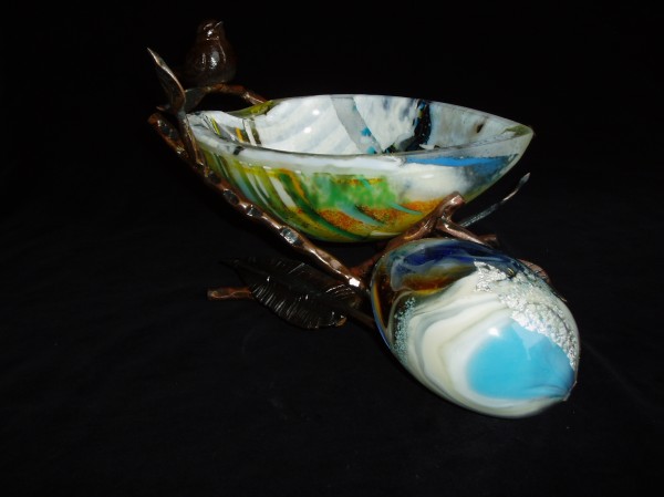 Well I had the time of my life again in a wonderful hot shop called Sandpiper Studios with Julie Gibb and Gordon Webster. 2 of the most generous and kind and TALENTED artists in Canada. I was humbled to be able to pick up my colour bars and gather over top of them and make my eggs for my bird basket series.