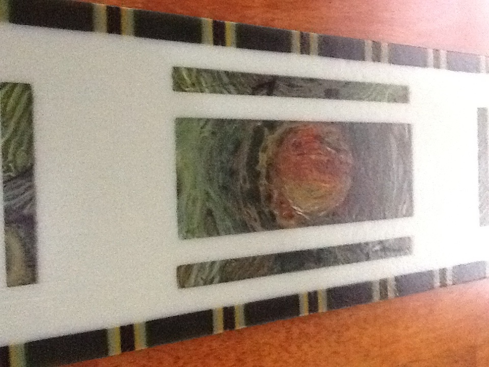 Excellent replies Stephen and Valerie, thanks. Here is the funny part I suppose. After my first strip design firing on thinfire, I saw the texture and assumed that It would fire polish out. And basically it did to the eye, but the surface felt "lightly dusted". So my next piece I assumed that a "light sanding with my red diamond pad would do the job of removing the dusty feel. All it did was shave off the tops of smooth micro mounds left by the thinfire so that the still smooth valleys were now in relief so to speak. So now as you can see in the photo a micro texture remains Thats kinda cool, but both of you guys are right about the level of gloss I desire. Going through the grits. Thanks!