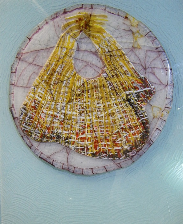 This piece is not quite in the right light in images shared. The segments around it have words in each one with the only one repeated is love. I deliberately smashed the piece to give a time worn look but had to laminate it onto laminated float because it stressed out on the cool down. Some things are meant to happen, I'm happy enough with the addition of float and the opportunity to add another dimension with the all the radiating carve marks from the heart, the Jesus thing going on works for me.