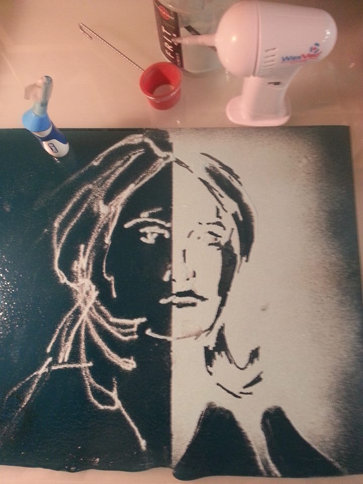 Have you all heard of the wax vac? It's a little vacuum that you can suck up small amounts of powder and then retrieve it. This art is by the talented artist Linda Humphrey. You can get these for under 10.00.
