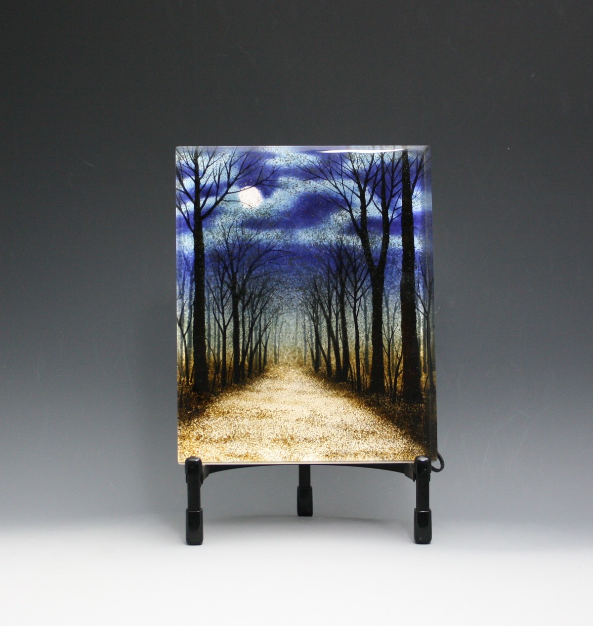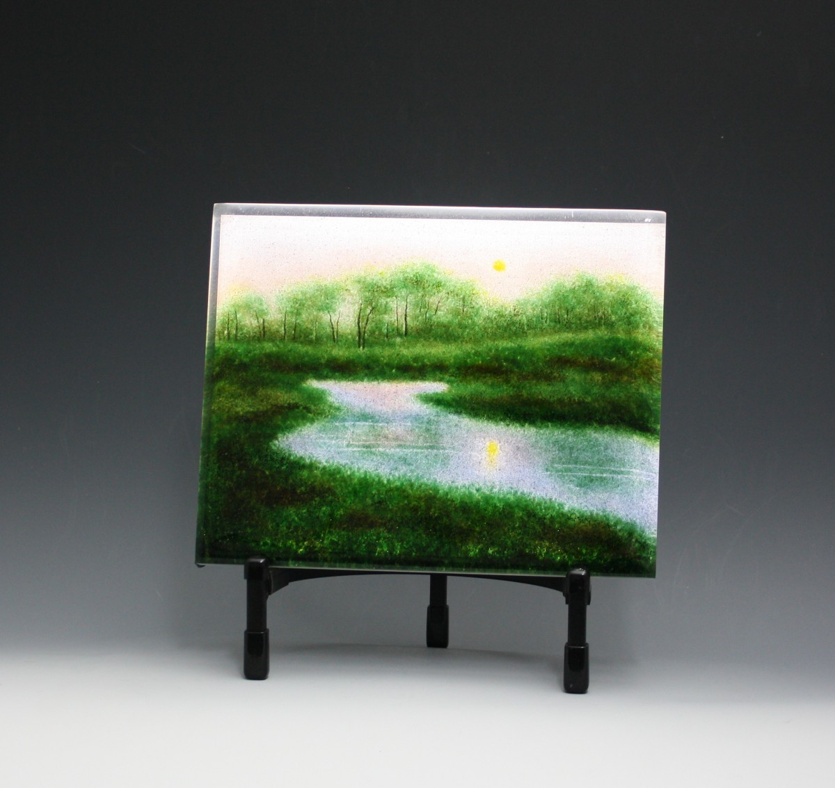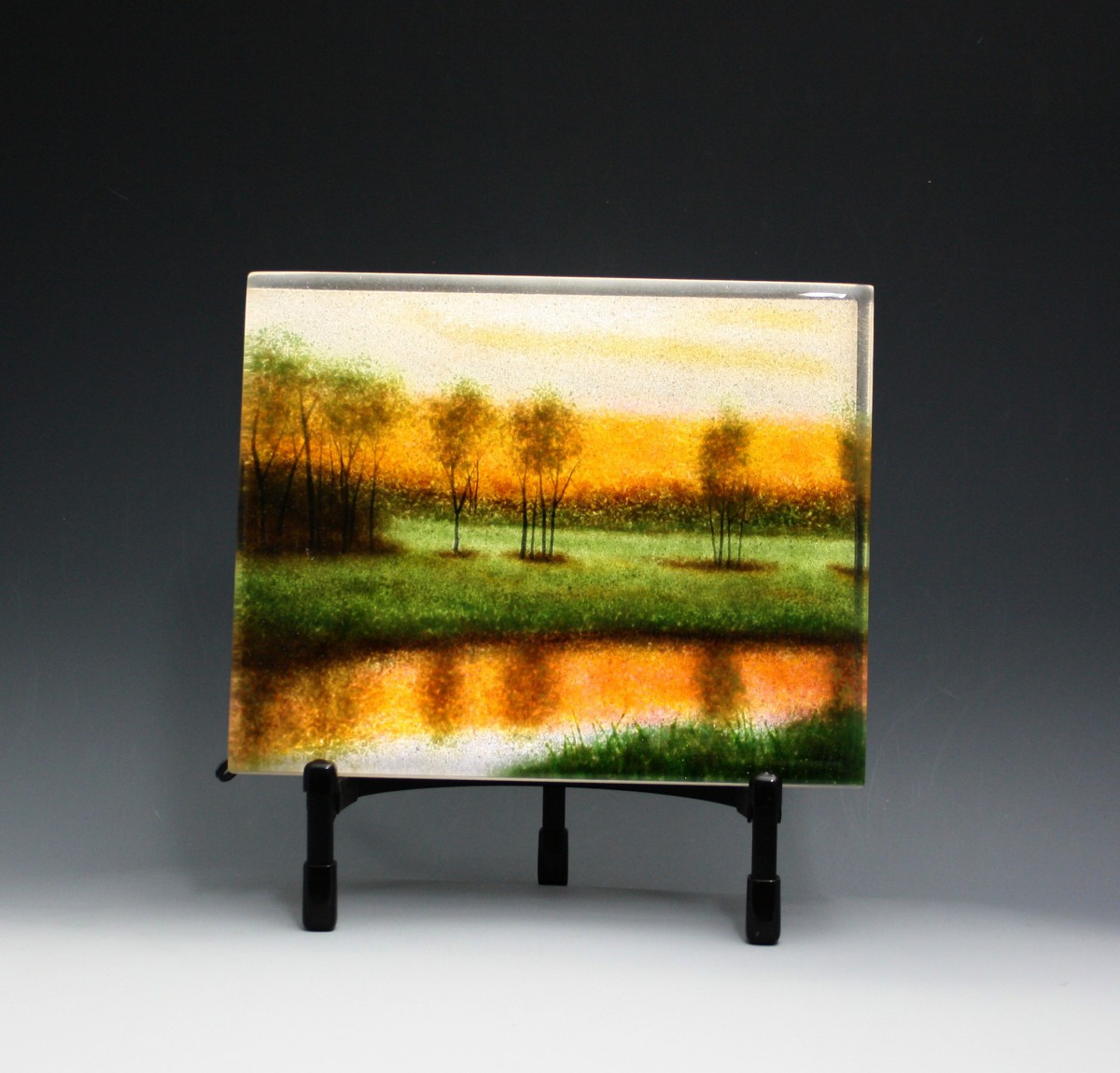 I just finished a new group of smaller (8x10x1) frit paintings that I wanted to share. I'm focusing on the mood of the landscapes, as well as more detail.