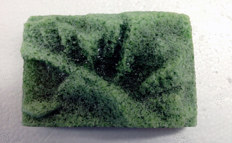 The second possibility is that you've got devit. Frit casts are far more prone to devit simply because there's more surface area from all those particles, and any grains of plaster that embed in the surface can act as nucleation sites. Extreme devit looks a lot like piles of sugar crystals. This is a badly devitted piece from the same molds as above: