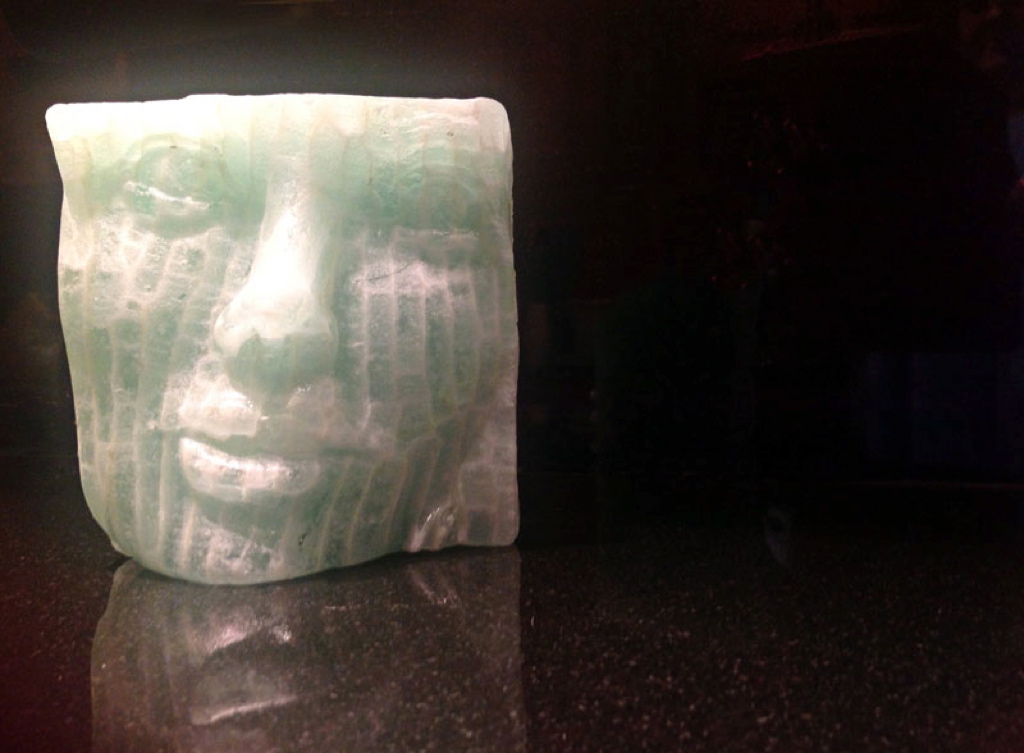 These goblets are Gaffer lead crystal, about 7-8 inches high. I polished the relief elements to a high gloss and left the foundation pretty much in its from-the-mold state (which was, fortunately, a nicely satin finish). I started with 400-grit wet-dry and a tub of water, moved from 600 to 800 to 1200 and touched it up with cerium handpads (from HIS Glassworks). It took about 2 hours per goblet. (I did have some additional machining to remove excess glass from the base, and knock off some flashing from the inside, but that was pretty much it for machine work). Gaffer coldworks like butter, to the point that I'd rather handwork than risk going too far with the machine. This 2-inch pendant is soda-lime (Bullseye), cast and extensively shaped with a foredom diamond wheel to remove the (rather large) glass sprue and rough-shape it into the current form at a level of about 200-grit. At that point, I switched to handworking, took it to a very high gloss with diamond hand-pads and then wet-dry sandpaper with a cerium pad finish. All told, there's about 6 hours of coldwork into this piece, maybe 4 of it in handwork. That's partly because soda-lime is harder than lead crystal and just takes longer to work, partly because the smaller you go the more difficult it can be to polish detail (there's only so much surface to hold the grit).