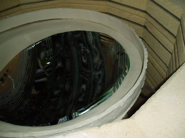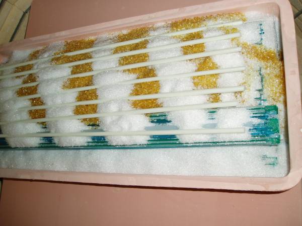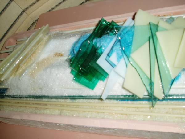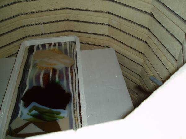 Although it may not be a pretty mold to some , it had to be structurally strong to handle the heavy wait from the 24" inch glass panel. So it is ready to go and now to dry it out in the skutt kiln to 1500 deg. just to cure the mold and make it strong enough to last for many a year. Les