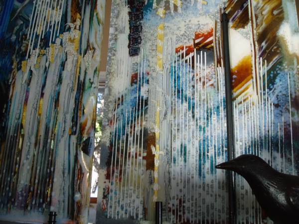 I almost forgot to post the polished edge. I live in such a wonderful community where we all help each other and Bavin Glassworks ( Ryan Bavin) gave me hand with his great equipment. Now I just have to find a Black Alabaster ( Gypsum) up at our local quarry . I have some really lovely smaller pieces but this finished piece needs a lovely big slab so we can then carve it out to nestle the piece. BUT good news , the new series " Glacial Striations" is doing well and now I have a show next year with these being the theme . So excited. New glass arrived and now I must get started on the colour bars to slice u