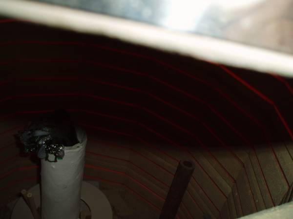 It is a ring of MM6 that I painted on the inside of the metal round dam , and then place on out side of mold to help with thermal shocking the edge as it is a large disc of glass and side elements . I just wanted to be very careful. It did not touch the glass, just sat there being a frame protector from heating up edge tooo quickly until center of glass had become warm. Hope that helps