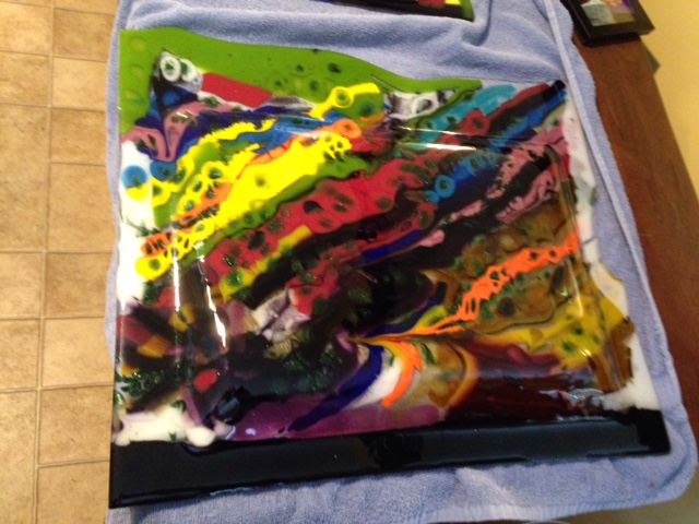 I agree with Valerie on many points. While I enjoy abstract work, I feel a greater sense of satisfaction with them when they have a sense of cohesion. In the case of your piece, I would want to add a border using a color that would accent one of the colors in the glass. Much like a frame or matting brings a sense of completion to a painting. Take a look at Kari Minnick's new work. While she doesn't use borders, her designs don't call for them. I hope you'll post more of your work because the enthusiastic way you're approaching your art is going to result in some powerful pieces.