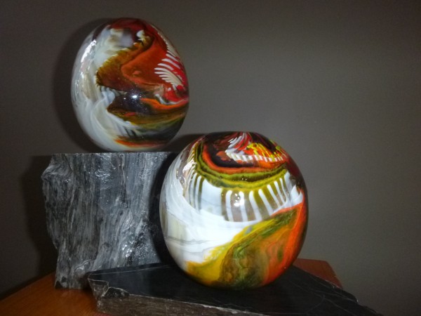 These are lovely, Les. Do you have any photos of the pickup? I'm havin a tough time visualizing the transition from color bar to hollow vessel.