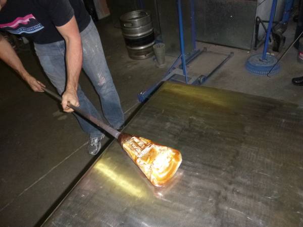 Once you pick up the colour bar on the blow pipe from the pick up kiln , then you blow it out. You first pick up a bullseye chunk of clear on the blow pipe so all glass is compatible.
