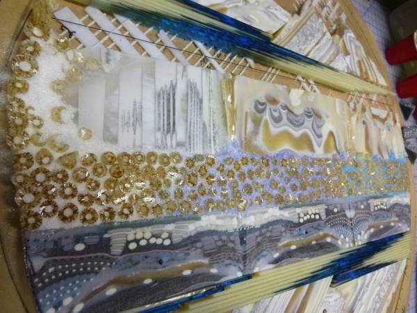 Always fun to design a piece that will use the vitorgraph pieces in a new way. This will be really fun to see how it turns out BUT will have to make a special mold to slump it as it is a little to big for my other molds I have made. Hope the power stays on until I am finished this piece as the old saying " WINTER IS COMING " and the power man does like to bring wind and snow and power outages. Hmmm! [-o<