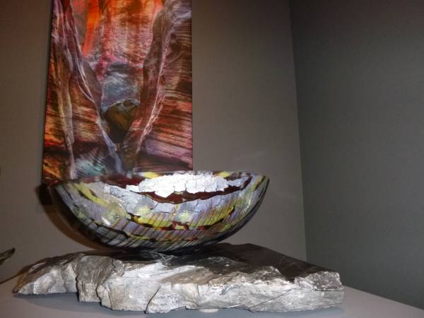 The show was called " STRIATION / COLLABORATION " and I had the honor to work with many different artists in metal and wood and flame working and blowing and stone ( black Alabaster from our own Gypsum mine here) . It was a year I will never forget and full of wonderful experiences and team work. Les