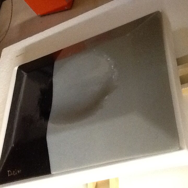 Could it have somehow slumped into the corners first, before center touched down, and thereby trapped air in the center? It wouldn't hurt to drill a 3/32" hole in the center, would it?
