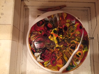 This was a 11.5" X 1/2" thick pot melt. Everything was fine after the initial pot melt. I cold worked the edges and then fired again to smooth and round the edges. When I opened the kilned after the second firing this is what I found: