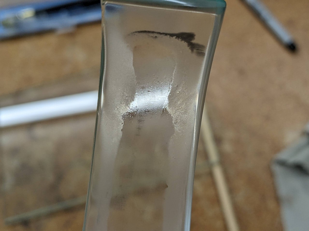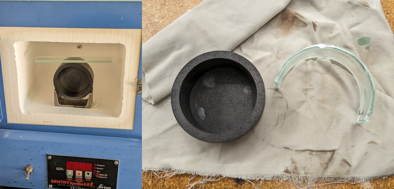 I'm slump forming 3/16" float glass over a graphite mold, and I'd like the result to be as clear as the original glass. The glass comes out of the oven though with a hazy, somewhat rough, surface where it was supported by, or even near, the mold.