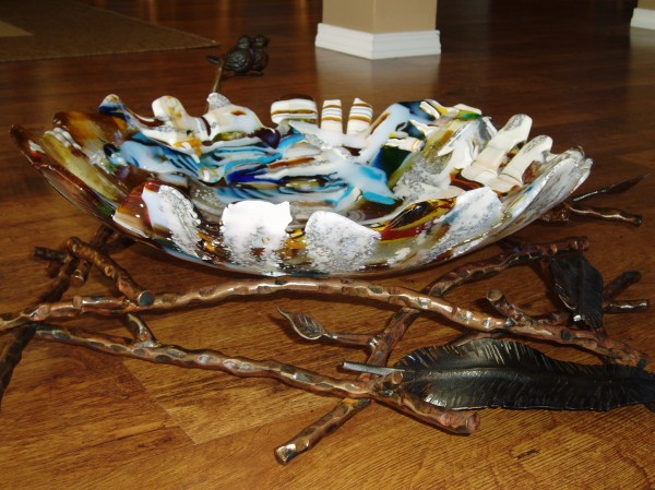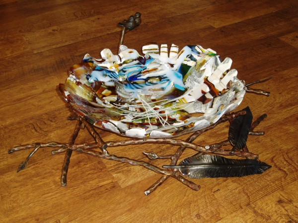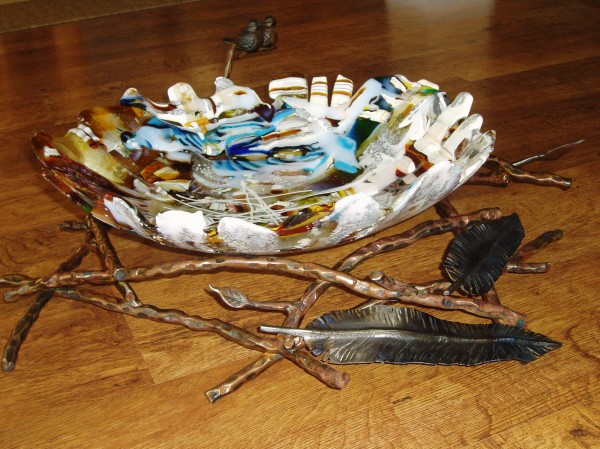 Creating a new birds nest. I had alot of fun with this 22 inch piece. NOW with a major thunder and lightening storm rolling through the Rockies here, I can only pray the power stays on long enough to finish slump into deep nesting shape. Ughgh!
