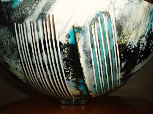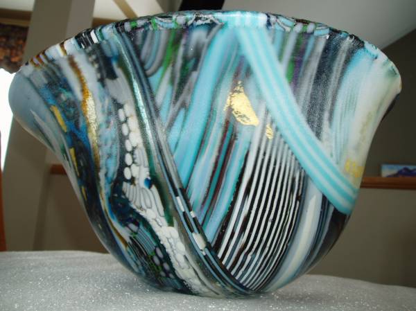 Hopefully this will show better. And in the bowl you will see on the side a sliced cane I drop pulled in my large kiln. Just makes it interesting I think