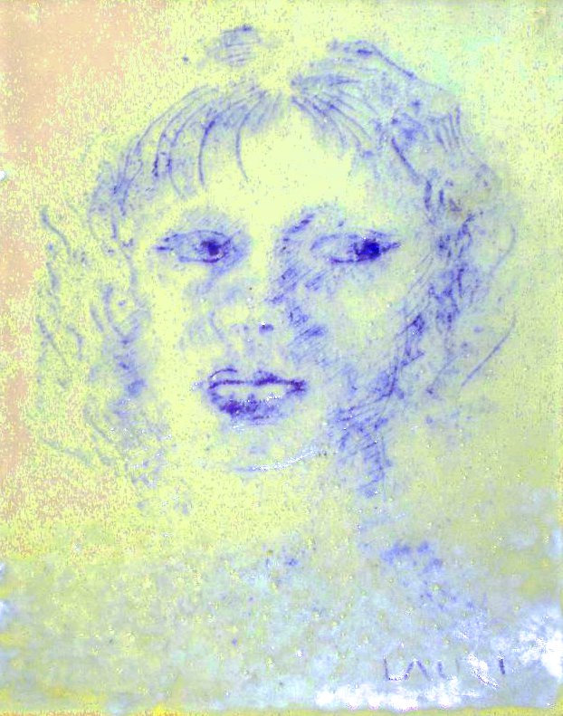 The Susan ihas only blue. The background colors are atifacts I could not photoshop away.