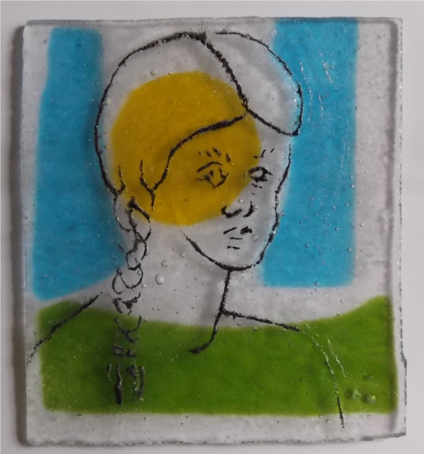 I tried one piece with dry powder without the intermediate frit. The result was very much like a charcoal drawing. That is a variation that needs further study.
