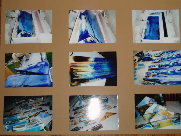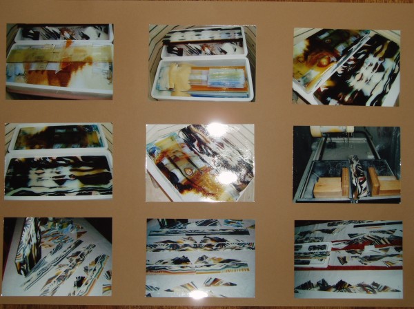 Hi Havi, have not talked to you for some time now. Have been away in the U.S.A. creating and enjoying Uroboros Glass Company so much. The last one is a corner of the middle Cast Piece . It is the 27 inch by 27 inch by 1 inch. I had alot of fun creating the color bars and then re-investing into the cast panels.