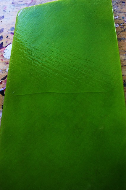there were a few little air bubbles in there though. probably due to the layering of those two glasses, and the confetti and streamers being face down on top of the spring green.