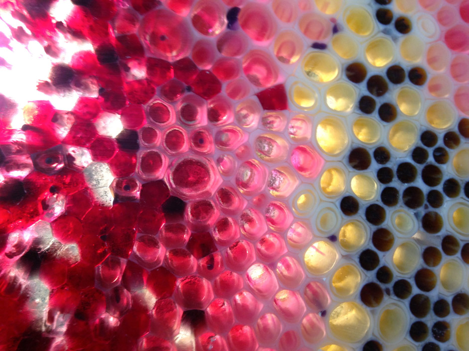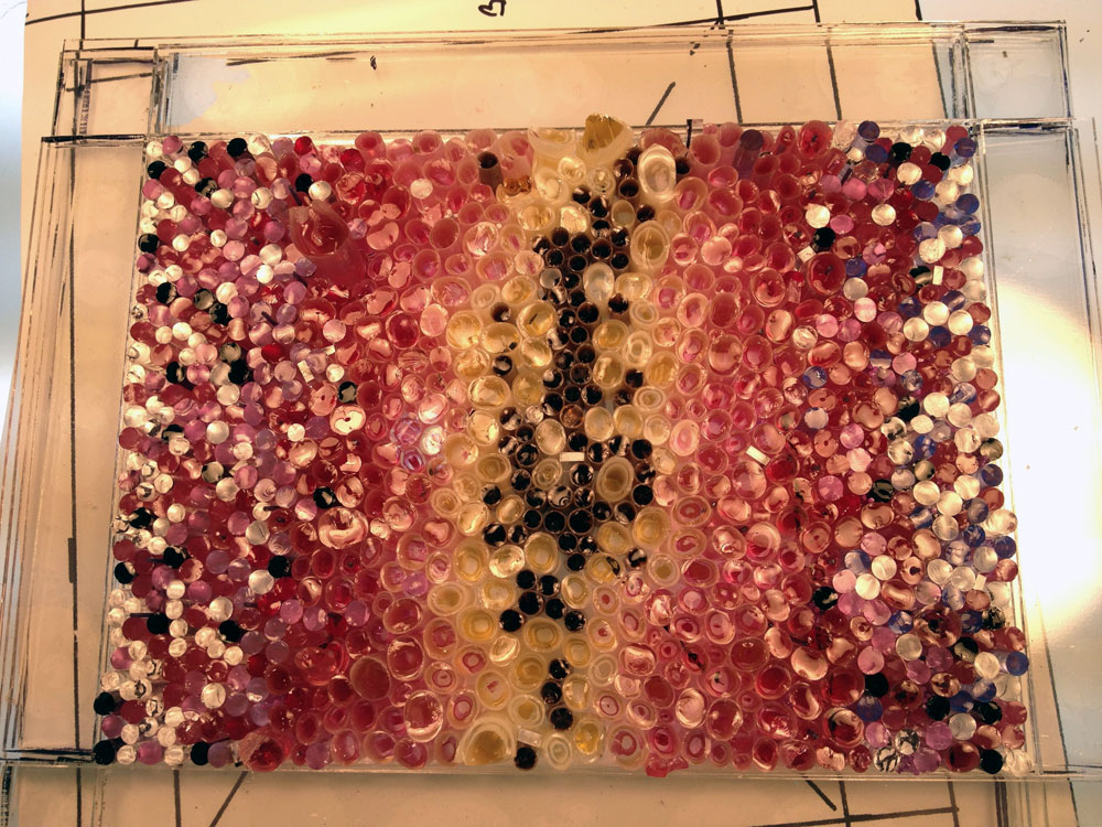 That's an interesting technique, Cynthia. Are the bits of rod and cane set on a thin piece of clear sheet before firing to create the clear spaces around the colors?