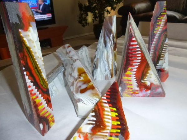 These are lovely, Les. Do you have any photos of the pickup? I'm havin a tough time visualizing the transition from color bar to hollow vessel.