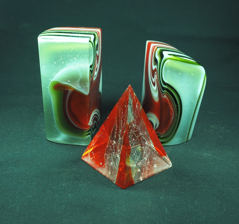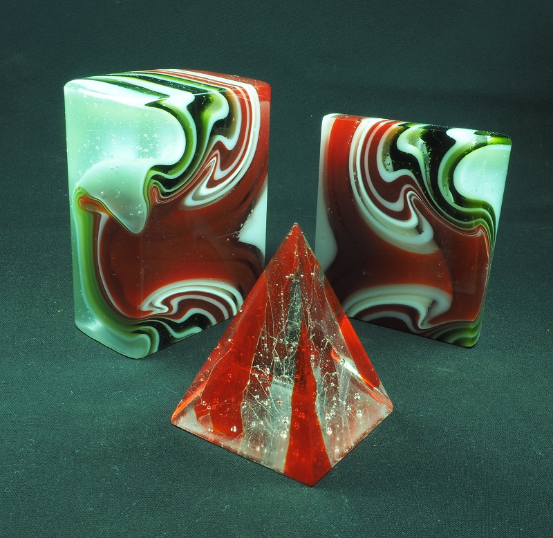 I used these two little projects to trial new mould set up to make these and bubble blocks. Happy that there is no shifting of the walls to allow leakage and that extraction of the fresh block of glass is a joy. Have been distracted with work using float for souvenir panels but am looking forward to using the new mould for bubble blocks toward making a three to four totem for a Whitsundays exhibition in August. peace, haydo