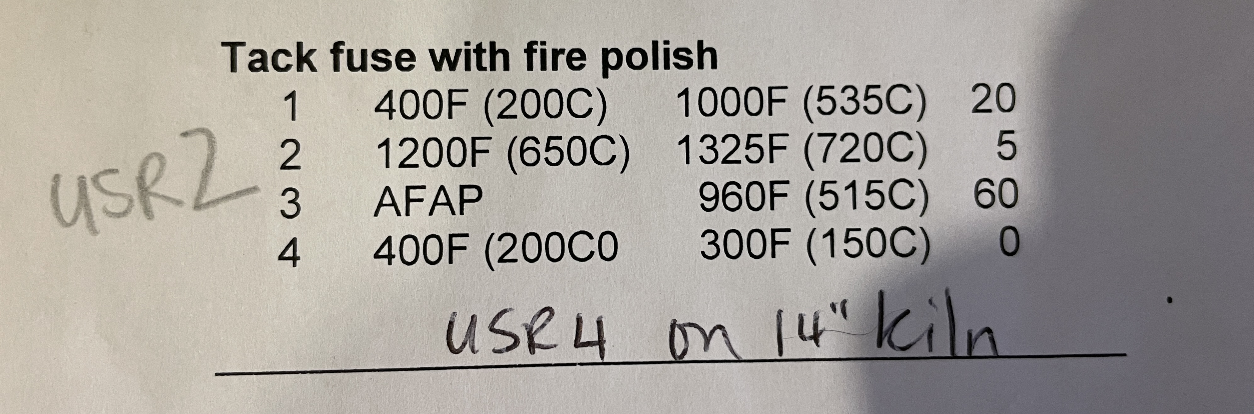 Tack fuse schedule for 14” cone art kiln