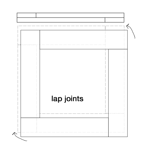 [_______________] (the top layer covers the seams of the bottom layer) (edited since the editor took out my spaces!)