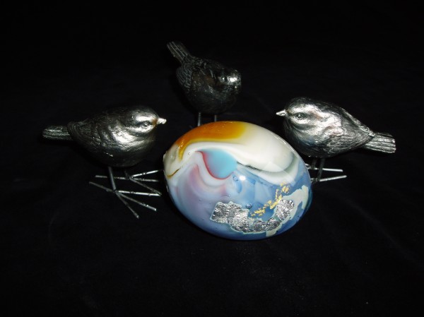 Well I had the time of my life again in a wonderful hot shop called Sandpiper Studios with Julie Gibb and Gordon Webster. 2 of the most generous and kind and TALENTED artists in Canada. I was humbled to be able to pick up my colour bars and gather over top of them and make my eggs for my bird basket series.