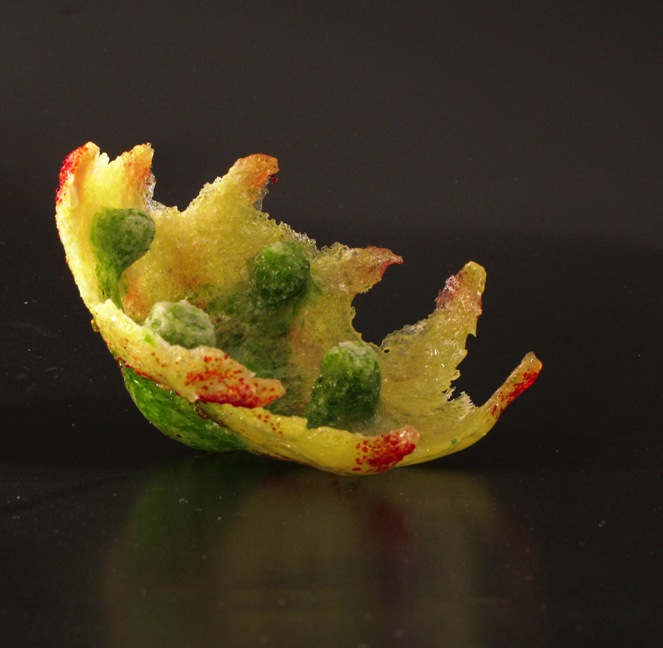 I love the fragile look of thin pate de verre(about 2mm). With the holes it seems like it is fragile but it is really strong inspite of the holes .