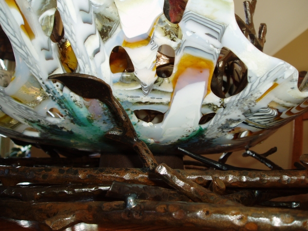 The eggs are colour bars that I manipulated at a friends glass blowing studio. Les