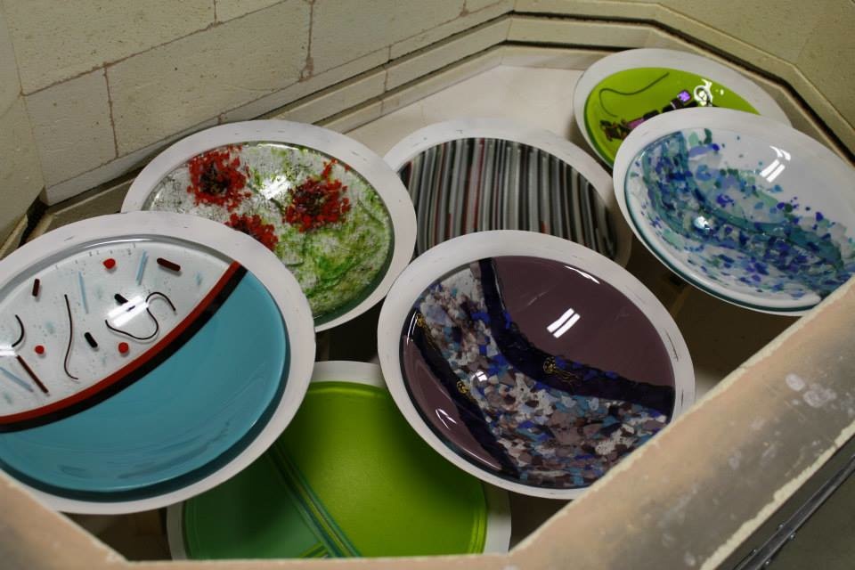 I saw this photo the other day and made a note of it to remind me that I could slump student work this way. I believe this was taken from a Patty Gray class.