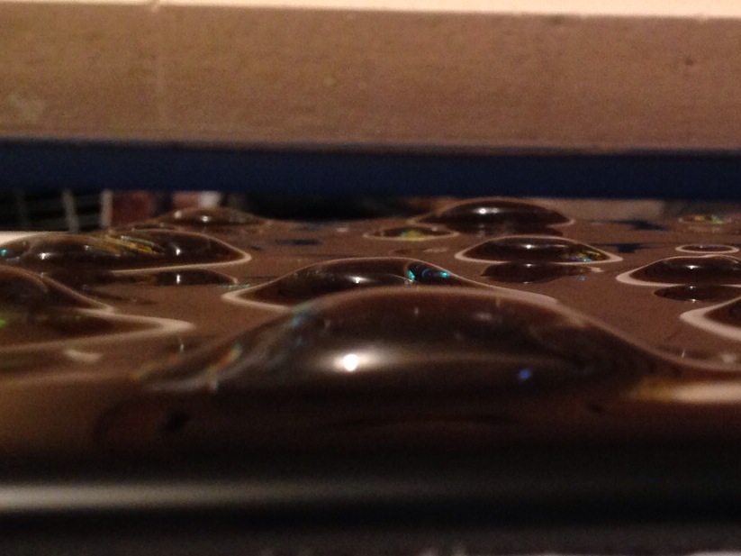 Sounds like you're sandwiching the dichro between the black and the clear, which is a recipe for bubbles.