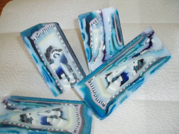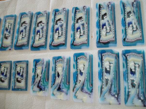 A new colour bar that will turn into our beautiful Rocky Mountains of Eastern British Columbia. I was sawing all day as I had to get a few of the bars cut and ready to take to the Glass Blowing Studio to Pull out into cane pieces but loved the way the mountains were looking like stratta lines. Hmm!