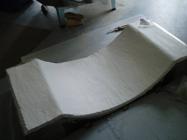 I am excited to experiment with Zircar Refractory Composites Moldable material ( Refractory Textile : RS-A Moldable ) while at Uroboros Glass Company . This is covering my large 44" inch stainless Steel metal Mold. My glass panel will only be 39 inchs long by 17 inchs wide but will be a fun experiment to help the glass slump and not to worry about sticking and shrinkage.