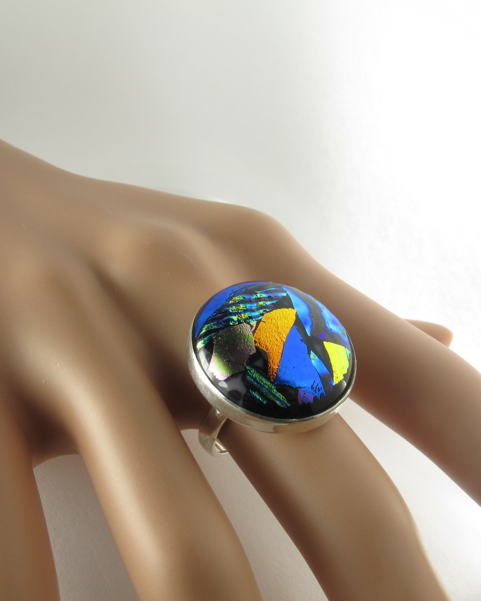 Can I resize a sterling silver ring with fused glass cabochon with out damage the glass? I mean the cabochon is attach with bezel and I meant to cut the ring to resize it and solder the ring while the glass is still on? any one can advice what can be done?