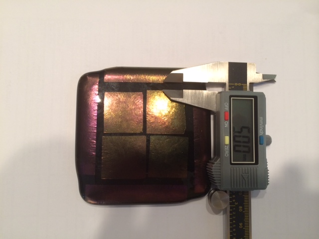 I have been using COE96 iridized glass to date with no success . No matter what I try face up, face down, face up then down... I cannot get cracks in my Iridized layer. My most recent attempt was Iridized fired face up on two layers of black making 3 layers in total. The plan was to use the spreading glass to pull the iridized layer apart and create cracks, but it stubbornly refuses to crack, so I am left with perfect rectangles of smooth shiny iridized metal surrounded by black.