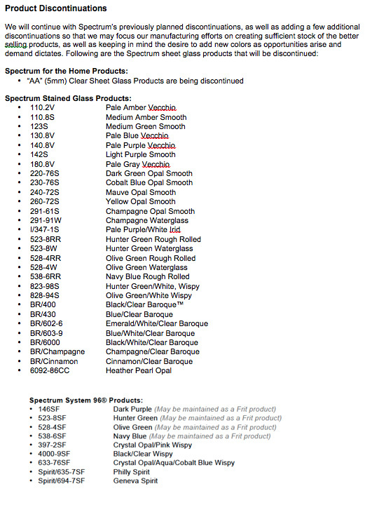 Many of the baroque glasses that Spectrum formerly made are listed as being discontinued at the new Mexican factory. If you can find any you want to use, buy it for once gone it probably will be gone for good.