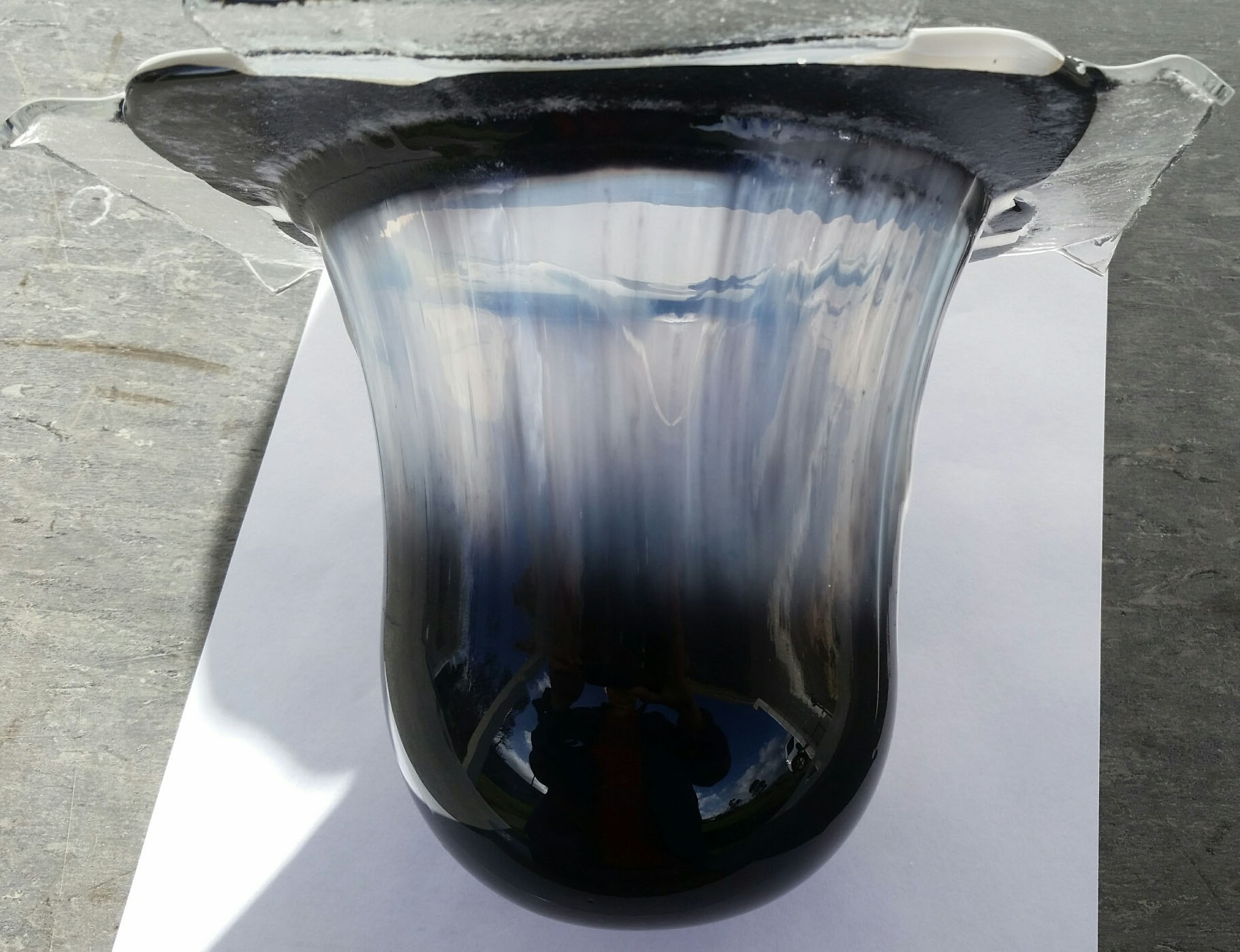 Then for the drop the tekta is on the mold, the inside of the vase will be white, and the black/white strips will be seen from the outside through the 2 layers of tekta. Will this be a better layout? I am personally not that keen on the black/white, but it is a wedding present to be delivered in September...if I can get it right 8-[ . At present I am going through the glass like if it was water running through my fingers. It will be a very expensive gift.