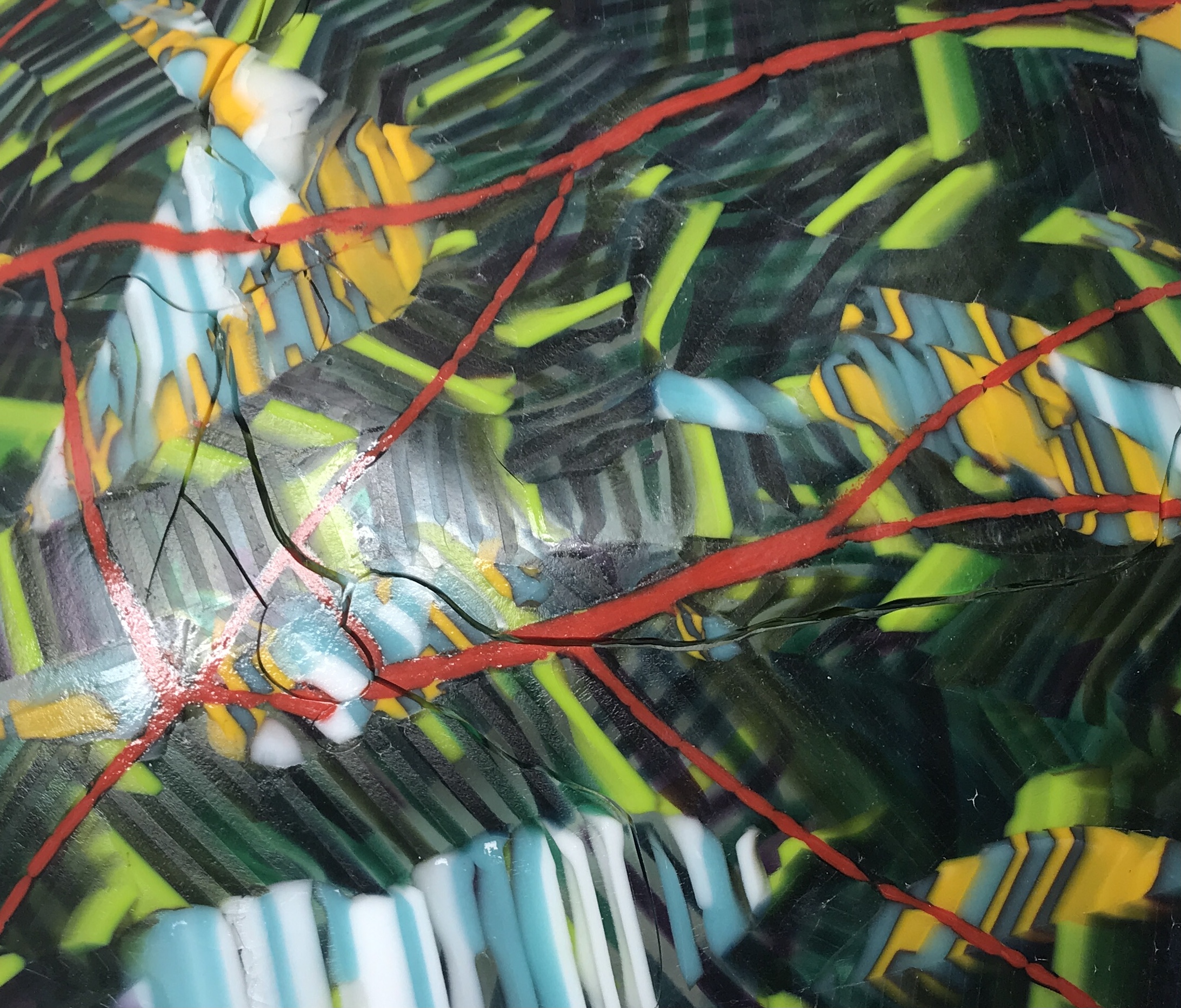 The mold was a shallow bowl 18x3 bullseye. For some unknown reason I cannot post a pic to this site. The inside edges of the cracks are not that sharp, the side facing the mold has sharp edges. It did not crack at element lines but across all.