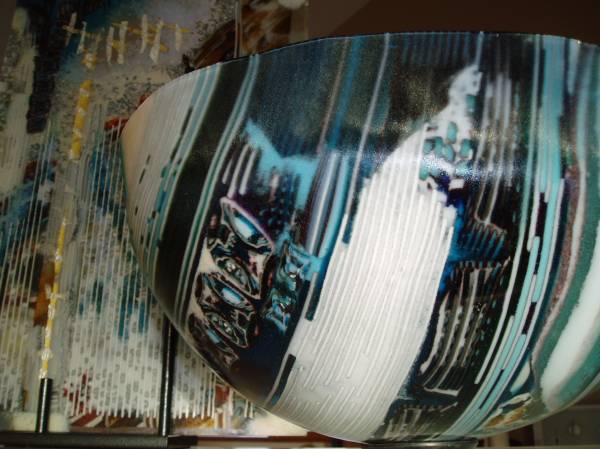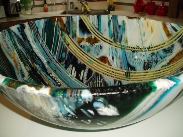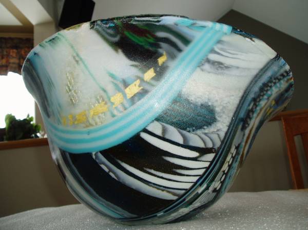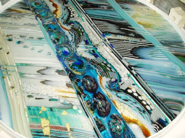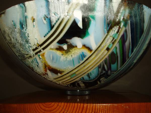 Hopefully this will show better. And in the bowl you will see on the side a sliced cane I drop pulled in my large kiln. Just makes it interesting I think
