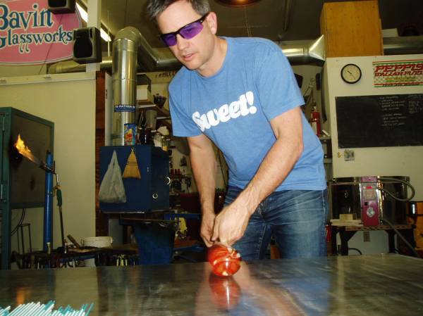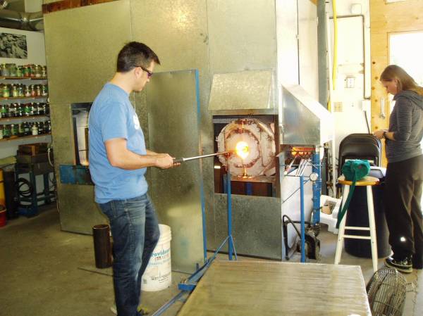 HAD a wonderful day with a good friend Ryan Bavin at Bavin Glassworks in Invermere, B.c. We added some stringers to outside of the canes and now will have to be patient until the canes are out tomorrow as I left them alittle thicker . Looked so lovely though hot.