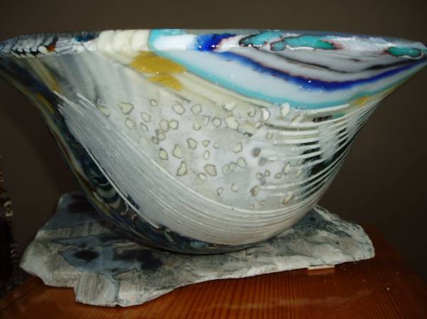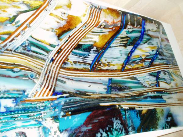 Well I am happy with how it slumped and now have to grind and polish the edge. This is the last of the series of this pallet for awhile and now onto my next show colours. Can hardly wait to begin the colour bars. Les