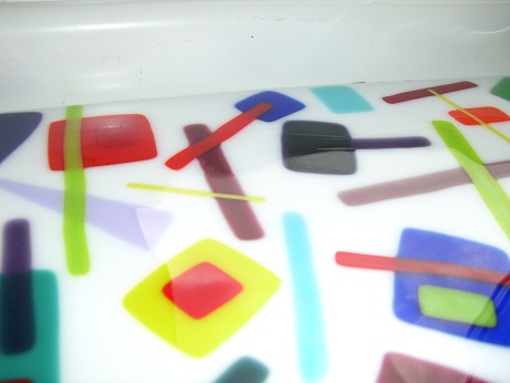 The worst of it is around the edges of the rectangles, as though its the sides of the coloured glass that have flattened in firing and devitrified.