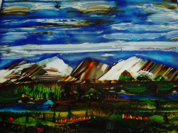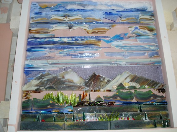 I know we lost alot of our early posts here on warmglass so for some that did not see alot of all our discussions and sharing, this one comes to mind in helping to show how creative we can get with Color Bars . Thankyou Sue and Bob for your kind words. I LOVE creating with color bars , and can design in my head how I want the color bars to flow and melt to create the color palette I want. Anyways, I think Rick Wilton is going to post a pic of the close-up of the sky as these pics are NOT GOOD at all. AND this old computer cannot even attach things anymore.