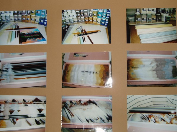 I thought I would share what I was up to at my Uroboros Residency in Portland. It was truly wonderful and met some wonderful artists , and of course the owners and Kat and Bill and all the staff are totally super. Carol Carson and I finally met and we laughed so hard because we both thought we already new each other , and of course Raphael and many other great artists. Walter Gordinier was so supportive as well, and we had some great conversations. It was a great experience. This piece is one of the smaller ones I created. Lots of sliced color bars. Not a great photo but at least an idea of what I was doing. 3 panels all span 8 feet , and are connected by a horizon line. Fun movement in the sky too. This piece is 27 inchs by 27 inchs by 1 inchs